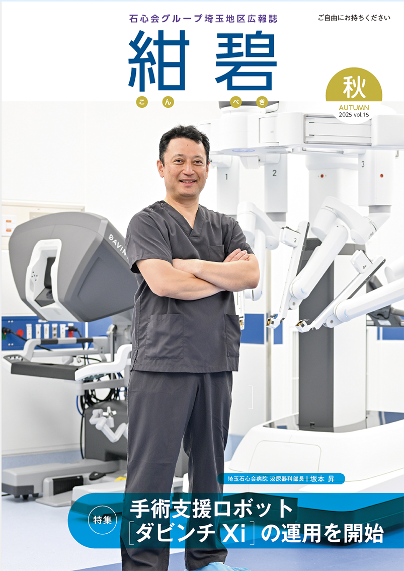 お知らせ 2025-10-09 石心会グループ埼玉地区広報誌「紺碧」2025年秋号を発行いたしました。 <特集> 手術支援ロボット『ダビンチXi』の運用を開始 埼玉石心会病院 泌尿器科部長 坂本 昇 医師 ●連携・登録医療機関のご紹介 ・医療法人社団久遠会 みずほ病院 ・がじゅまる内科クリニック 是非ご覧ください。 バックナンバー 2025年夏号 2024年春号